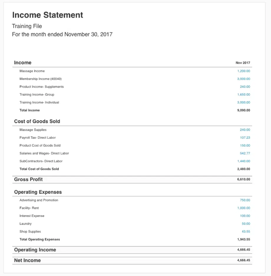 Revenue is your gross income and will always be listed first and will be broken into categories if there are any (service income, sales income, etc) to provide the level of detail your business requires.