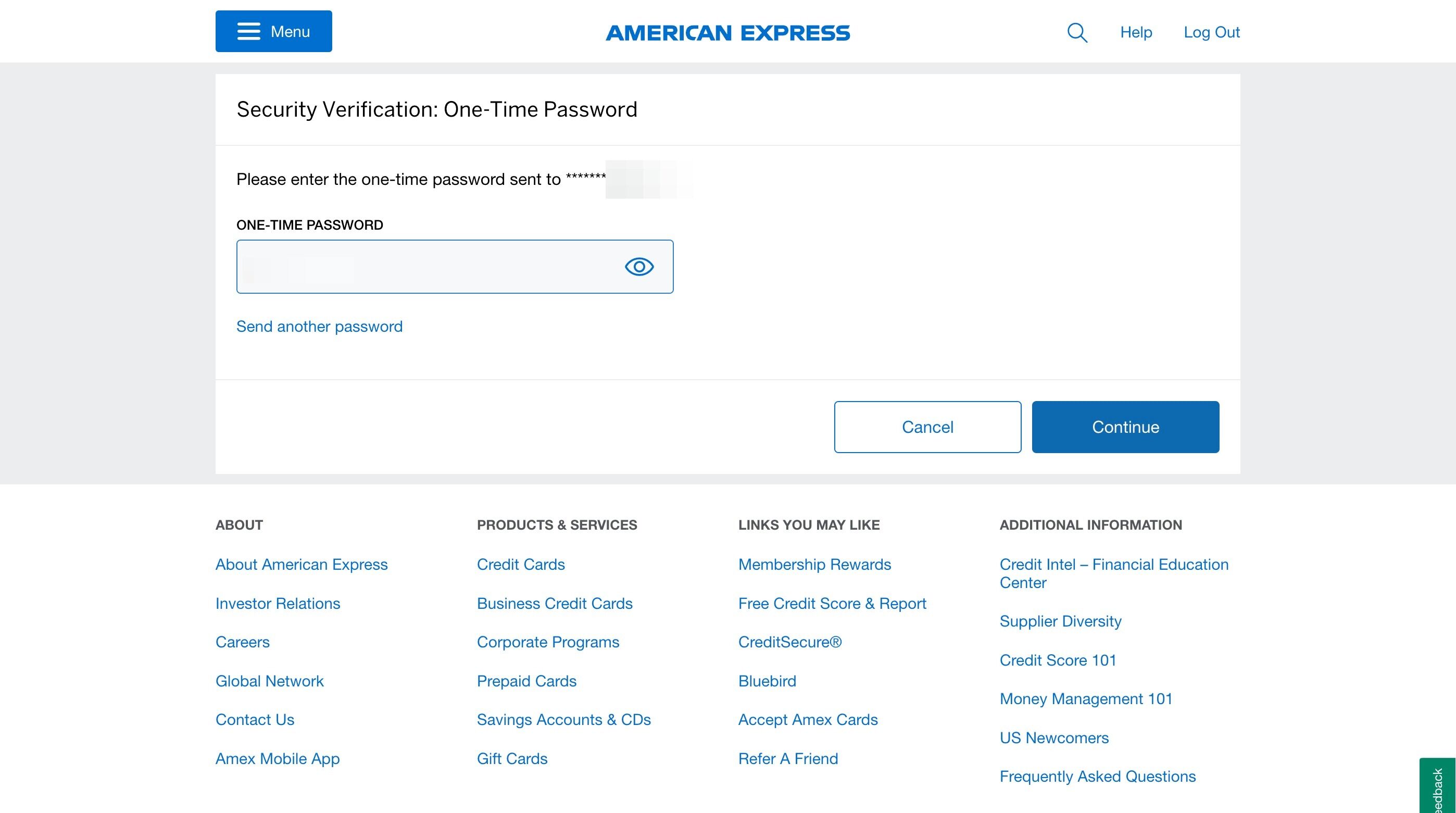 7. Enter the one-time code and click "Continue"